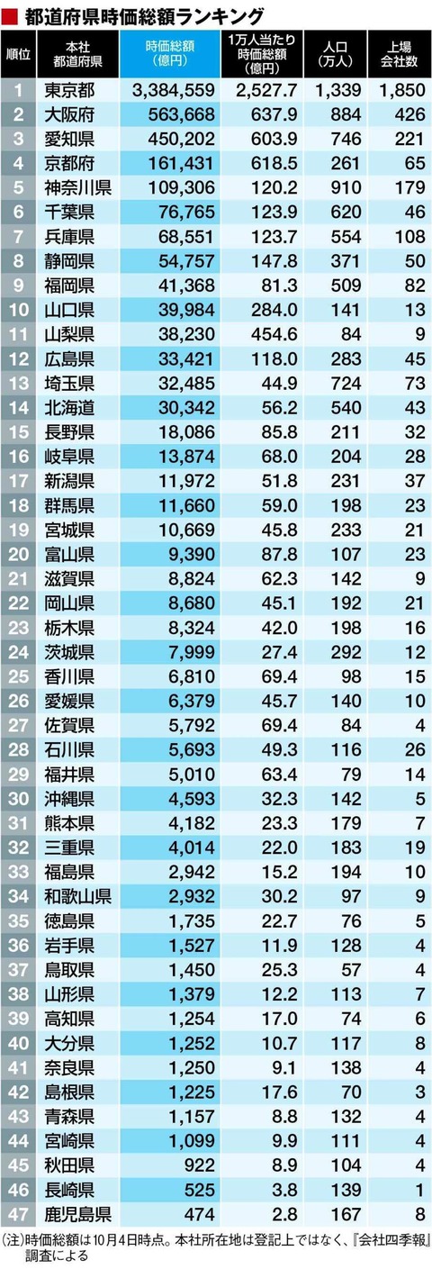時価総額低い企業集まったところで、東京大阪愛知以外は京都未満よ