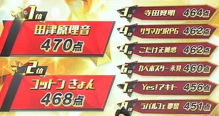 謎なのはなぜ出番順7番の点数が最初に出たのかってことや