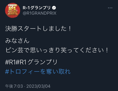 まあむしろ誰も見ないR1が話題になっててありがたいまであるやろ