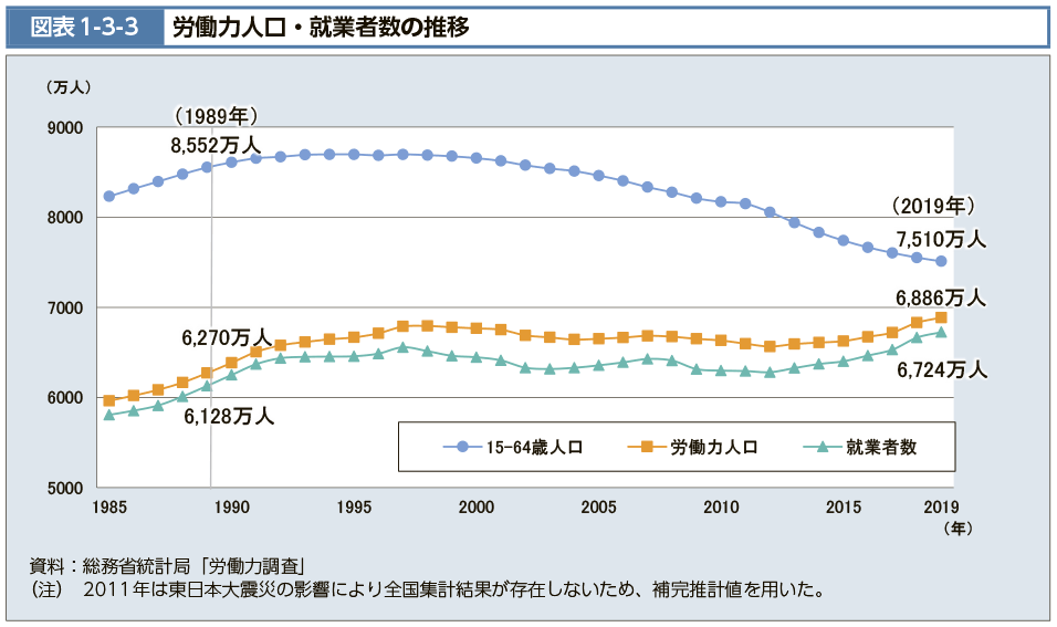 まず日本は労働力人口がアホみたいに減っているという前提を加味しような