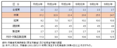 平地でできる国にボロ負けして打ち捨てられた状態だけど輸送の方が金がかかるようになってきたから国内の林業も見直されて事故も減るんじゃないかな
