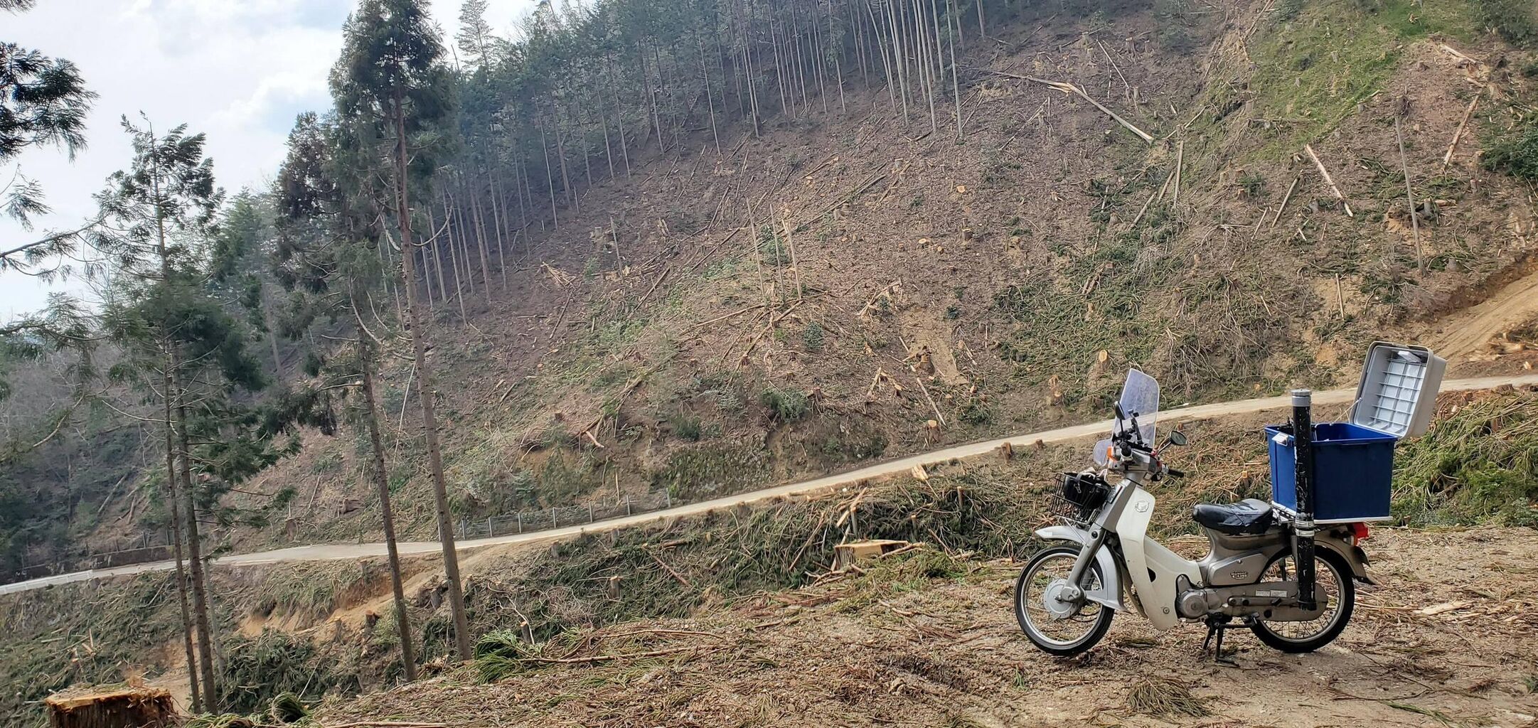 林業←石転がってきます、土砂降ってきかす、木も降ってきます