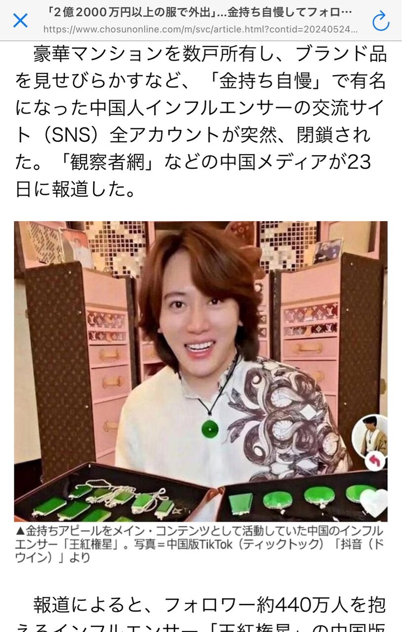 「2億2000万円以上の服で外出」…金持ち自慢してフォロワー400万人を失った中国人インフルエンサー(朝鮮日報日本語版) - Yahoo!ニュース