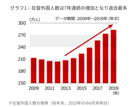 移民党安倍・菅コンビ登板した翌年から、在留外国人が爆増。