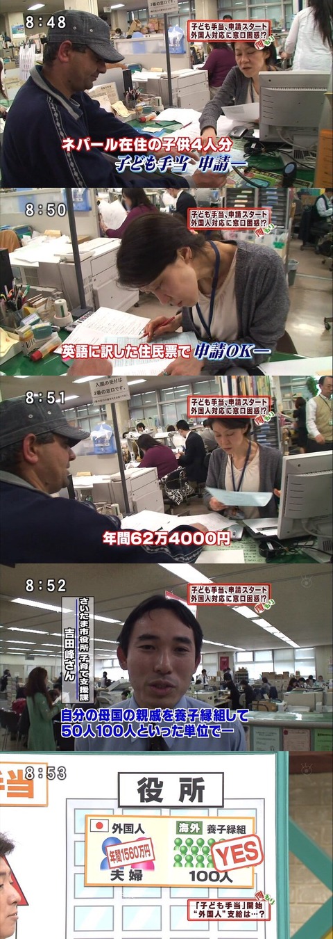 彼らの生活費や医療費はもちろん日本人が払う