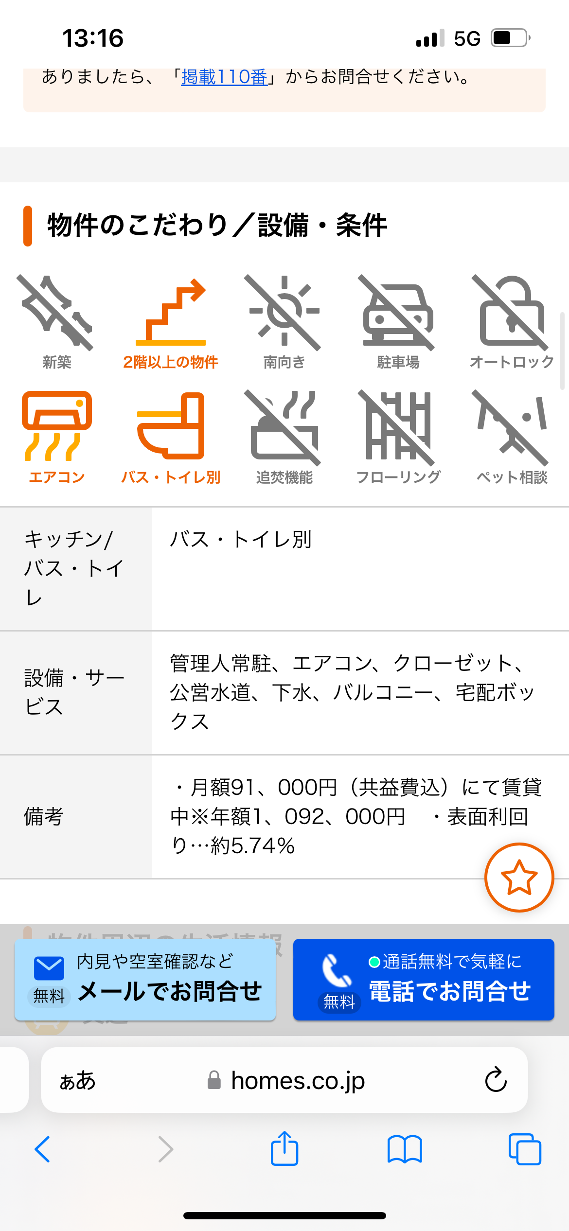 備考に91000円で賃貸中って書いてるわ