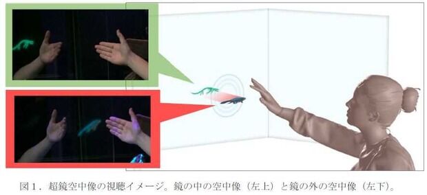 NTTは26日、鏡の中に表示したバーチャルキャラクターを鏡の外へも自在に移動させることができる新たな映像技術「超鏡空中像」の表示システムを世界で初めて開発したと発表した。