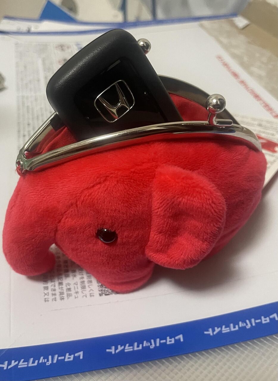 ドムドムのがま口を車の鍵入れに使ってる