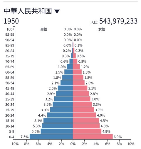 つまり中国もこれと近いか同じ人口ピラミッドになってないとおかしいことになる