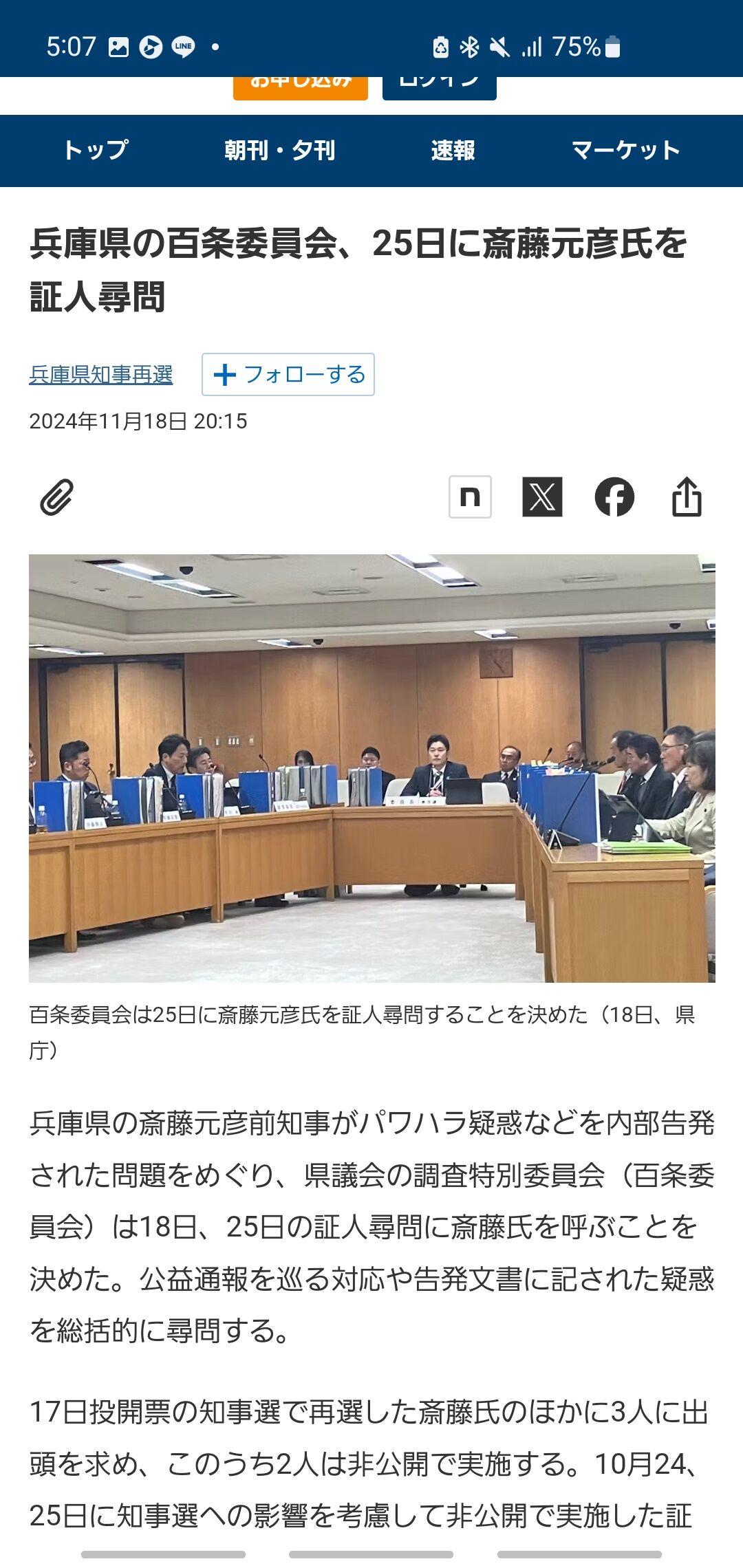 毎日だかがトップ記事扱いで、斎藤知事が欠席の見出しで記事にしてたな