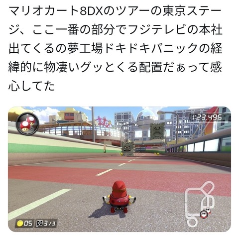 【任豚悲報】マリオカートの背景にフジテレビ本社があることが判明wwwww