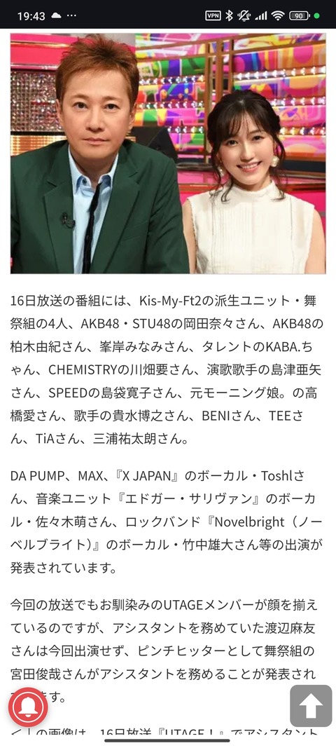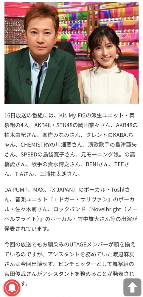 本当にフジだけなんか?中居といえばうたばん