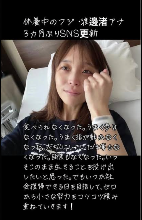 「無理しないほうが…」PTSD公表の元フジ渡邊渚、社長会見直後に“グラビア批判”への反論投稿
